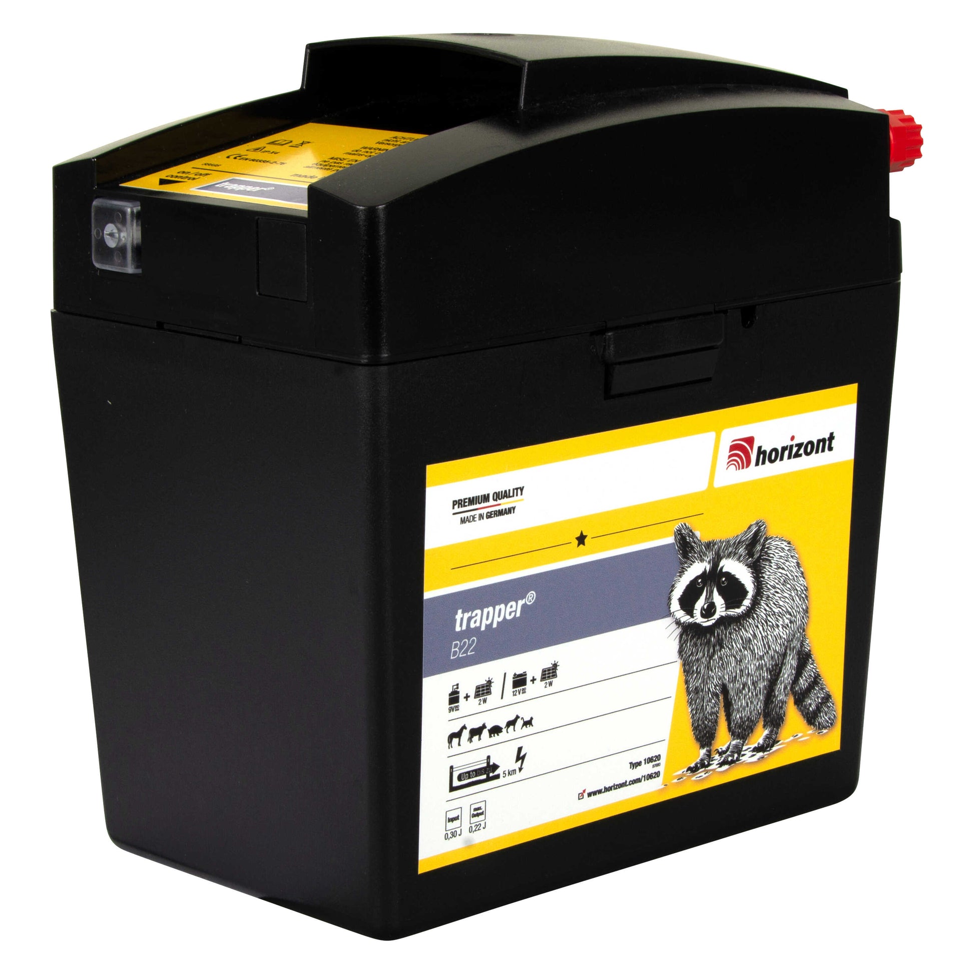 Detta universella 9V-batteriaggregat passar för medellånga stängsel, även med viss vegetation. Enheten levererar 0,3 J inmatningseffekt och upp till 0,22 J uteffekt, vilket ger stabil prestanda.
