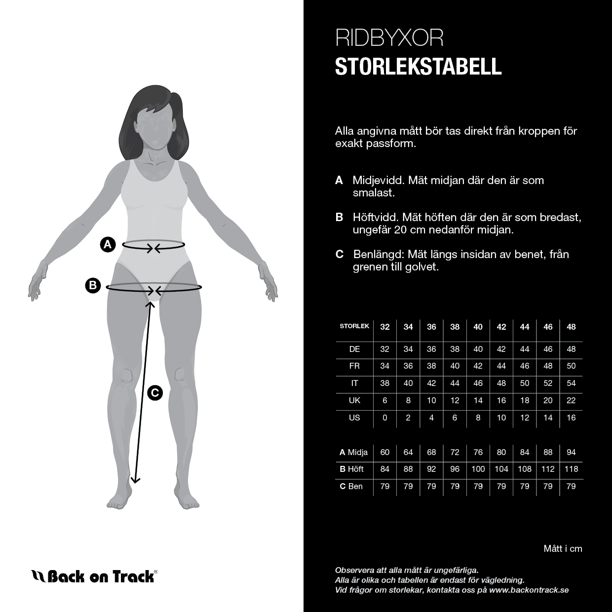 Ridbyxorna är stretchiga och följsamma med en unik skräddarsydd passform som följer kroppens former när du sitter i sadeln. Utan sömmar på insidan av ben och säte för att undvika skav. Sidosömmens panel på utsidan av benet är placerad för att inte ge tryck eller skav vid knäskålen och de känsliga senorna och musklerna i vid knät. Den mjuka och elastiska linningen är hög och välformad för att ge ett bra stöd och följa ländryggens konturer.