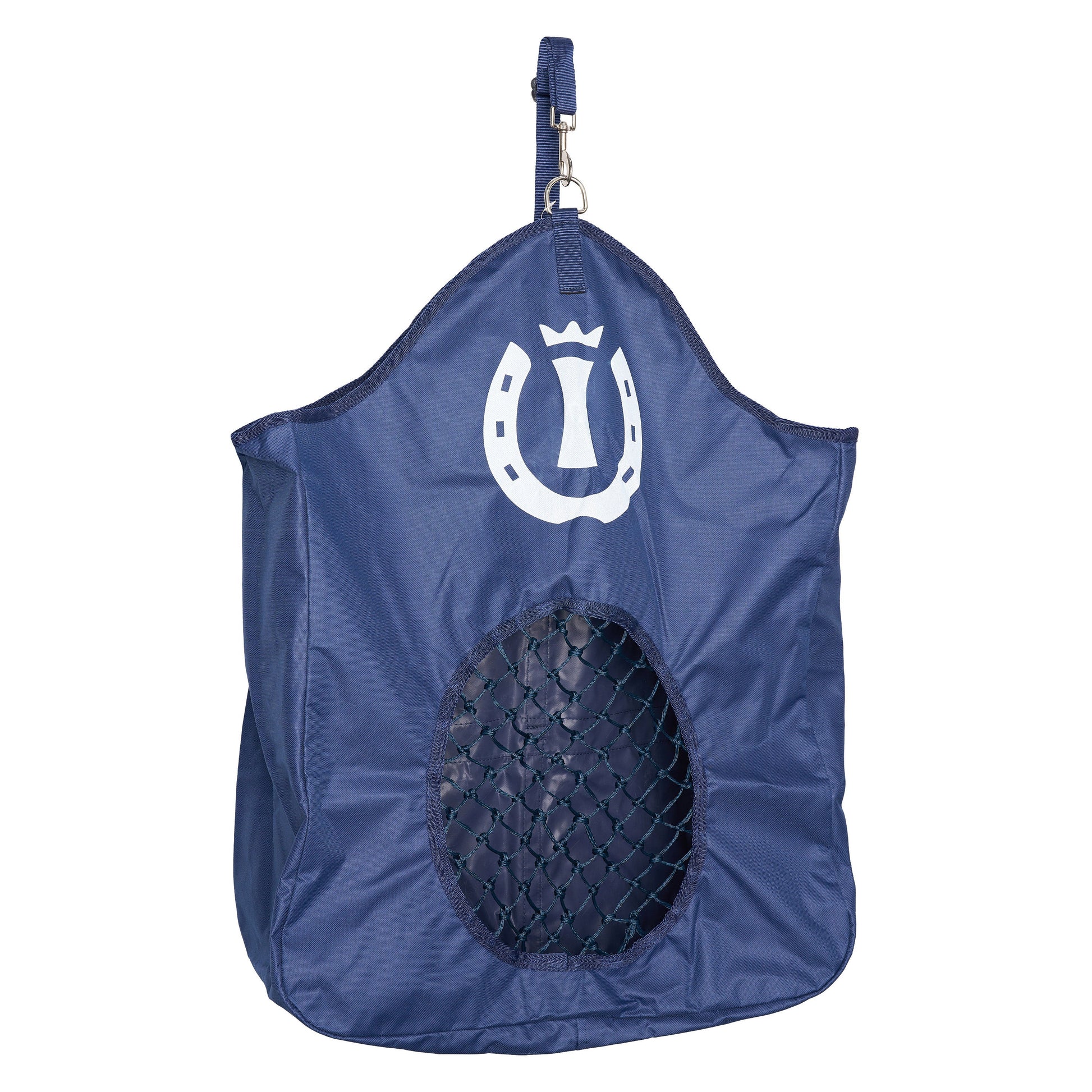 Praktisk höpåse med stor öppning på framsidan som gör det enkelt för hästen att äta i lagom takt. Utrustad med upphängningssystem för smidig användning i stall, hage eller transport.