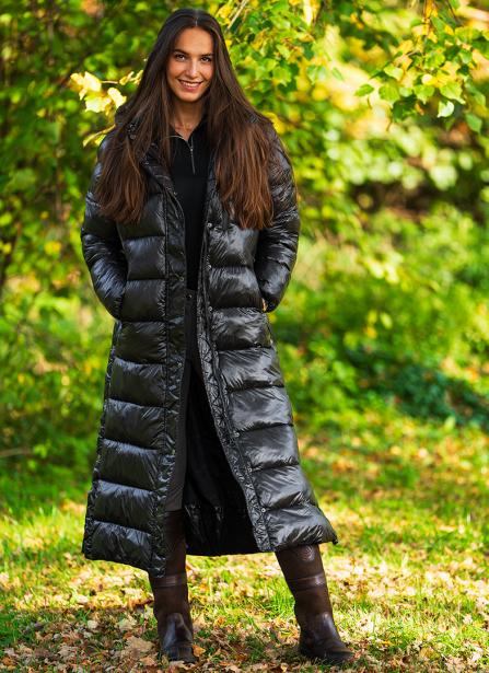 Lång, varm vadderad rock med höga slitsar. Reflexdetaljer, flera framfickor med vattentäta dragkedjor och en skyddande avtagbar huva.