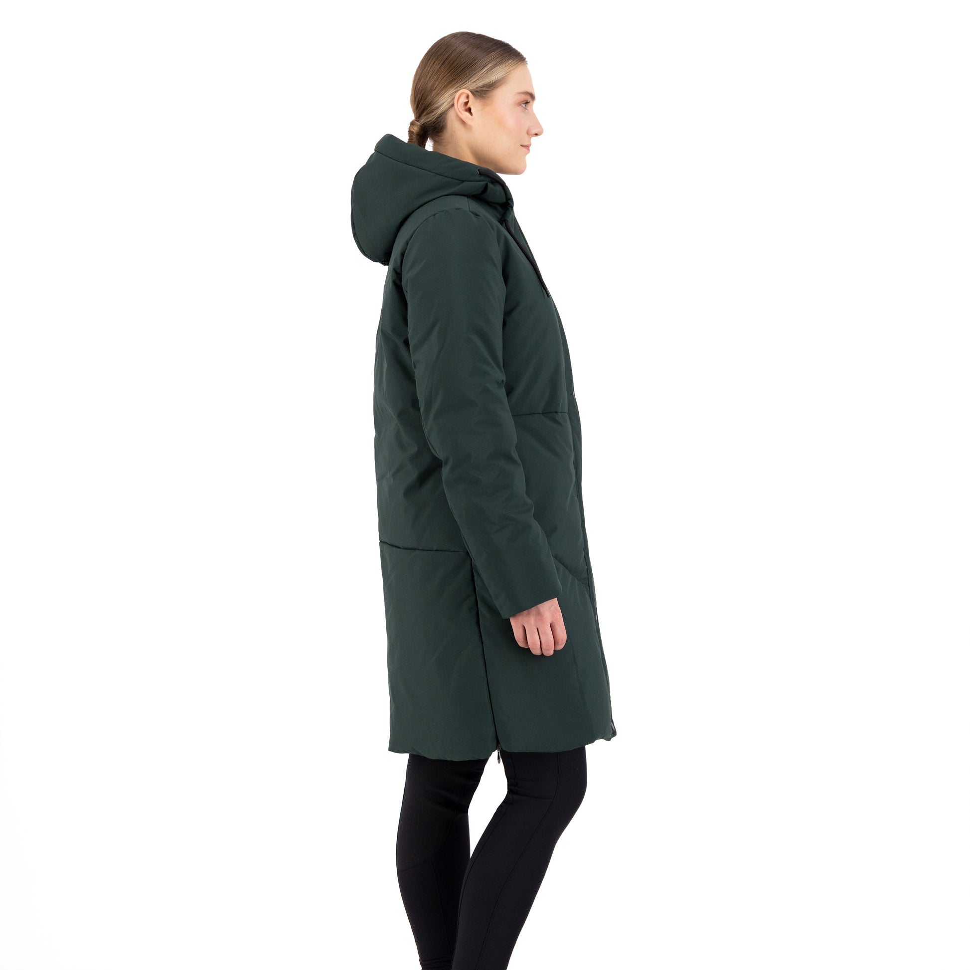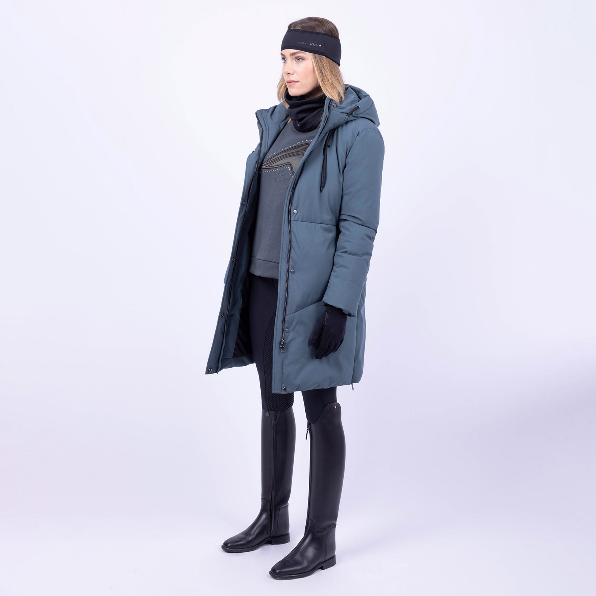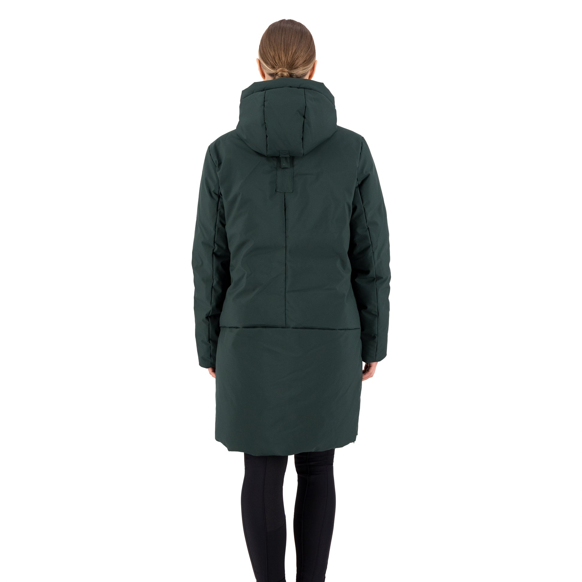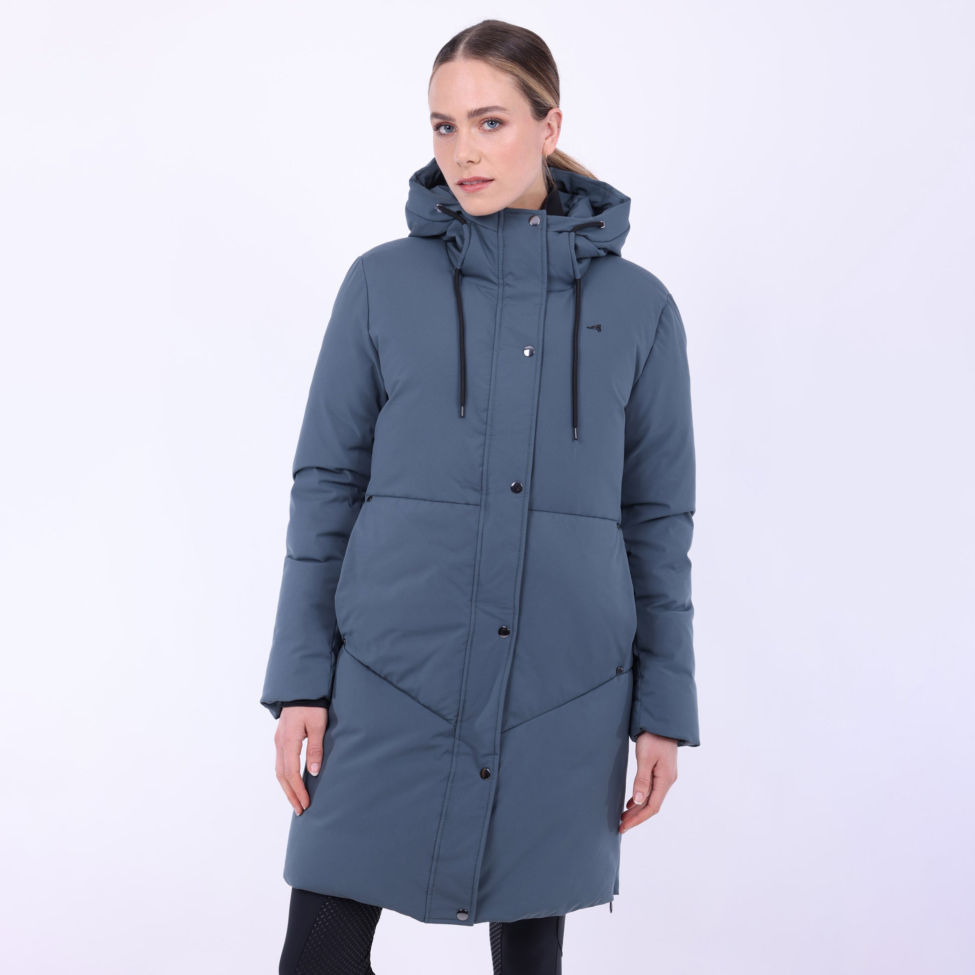 Det vattenavvisande och vindtäta materialet håller dig varm och torr oavsett om du tränar dressyr, värmer upp inför hoppning eller arbetar i stallet. Den justerbara huvan, den tvåvägsdragkedjan framtill och de diskreta dragkedjorna i sidosömmarna ger rörelsefrihet i sadeln utan att kompromissa med stilen.