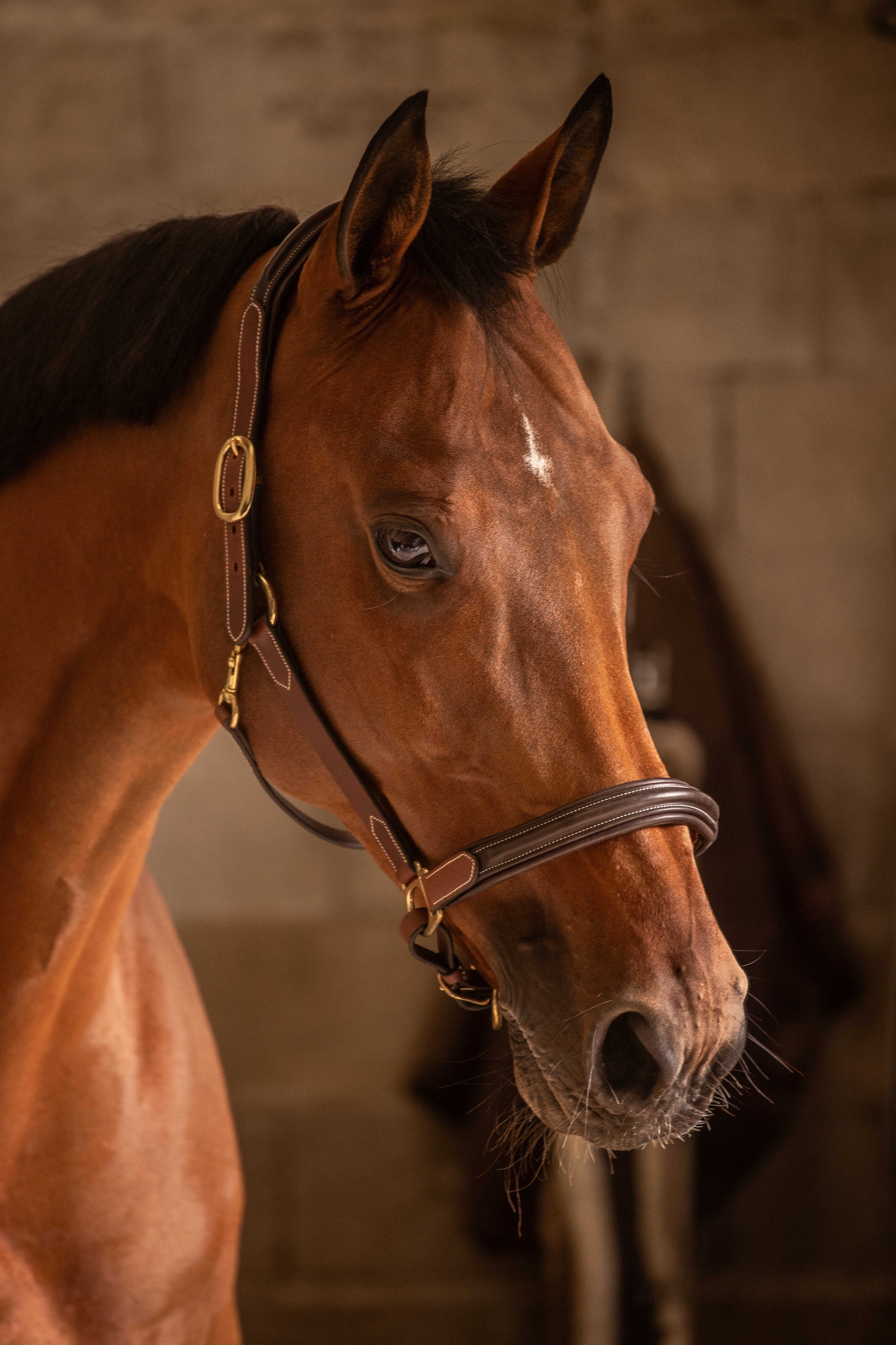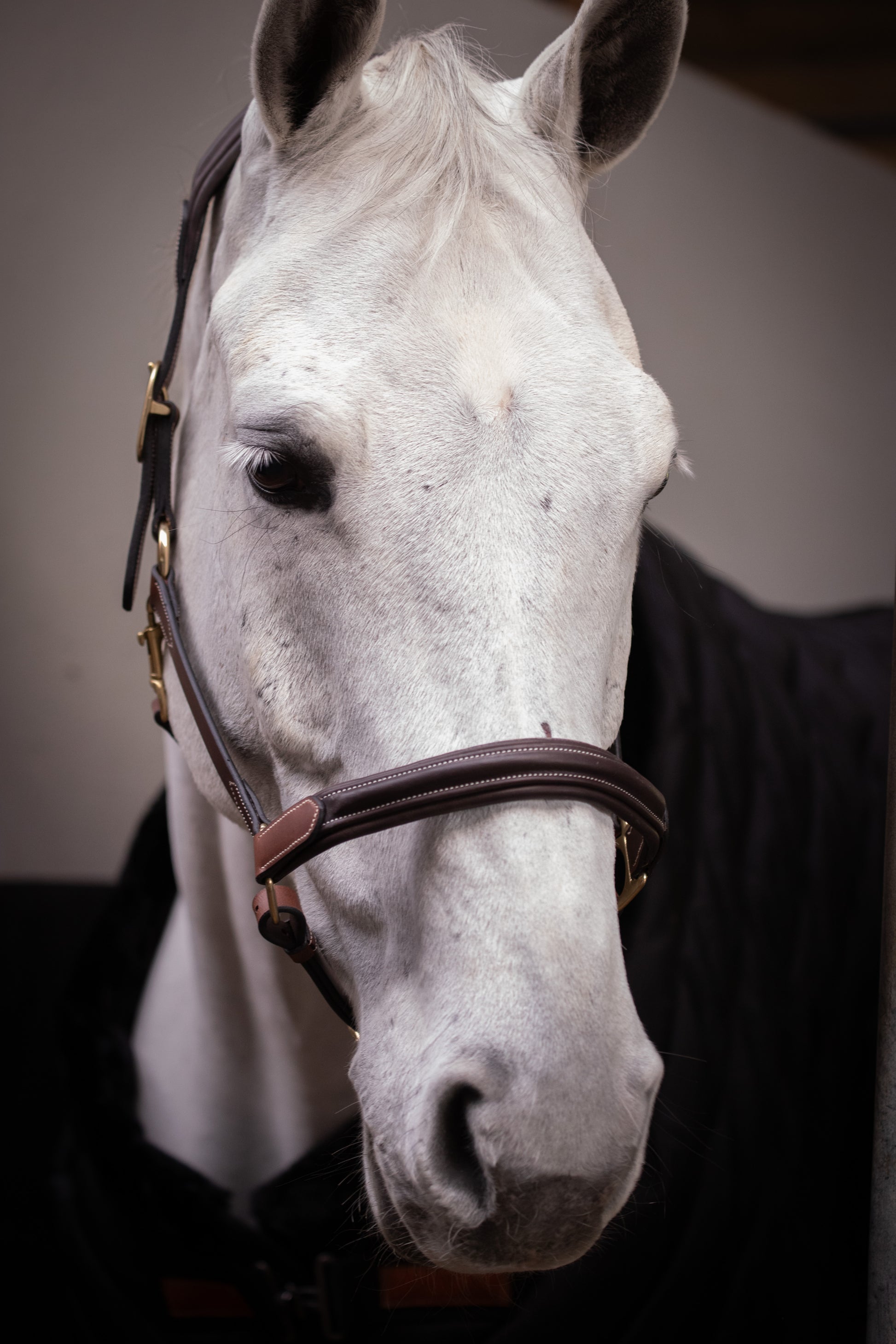 Grimman passar utmärkt tillsammans med det matchande Paddock-lädergrimskaftet för en komplett, klassisk look.