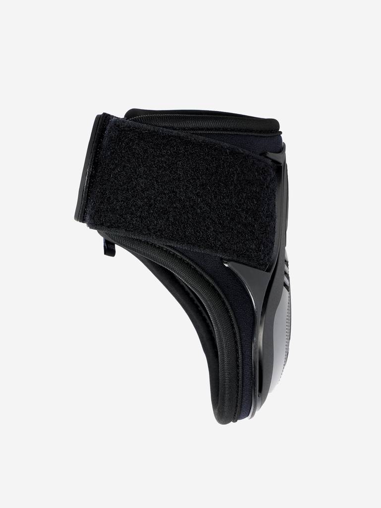 Dessa skyddande fetlock boots har ett formsprutat slagområde som effektivt dämpar stötar, samtidigt som flera mesh-öppningar säkerställer god luftgenomströmning runt kotleden. Den dubbla kardborrestängningen ger en säker och stabil passform – helt utan elastiska remmar.