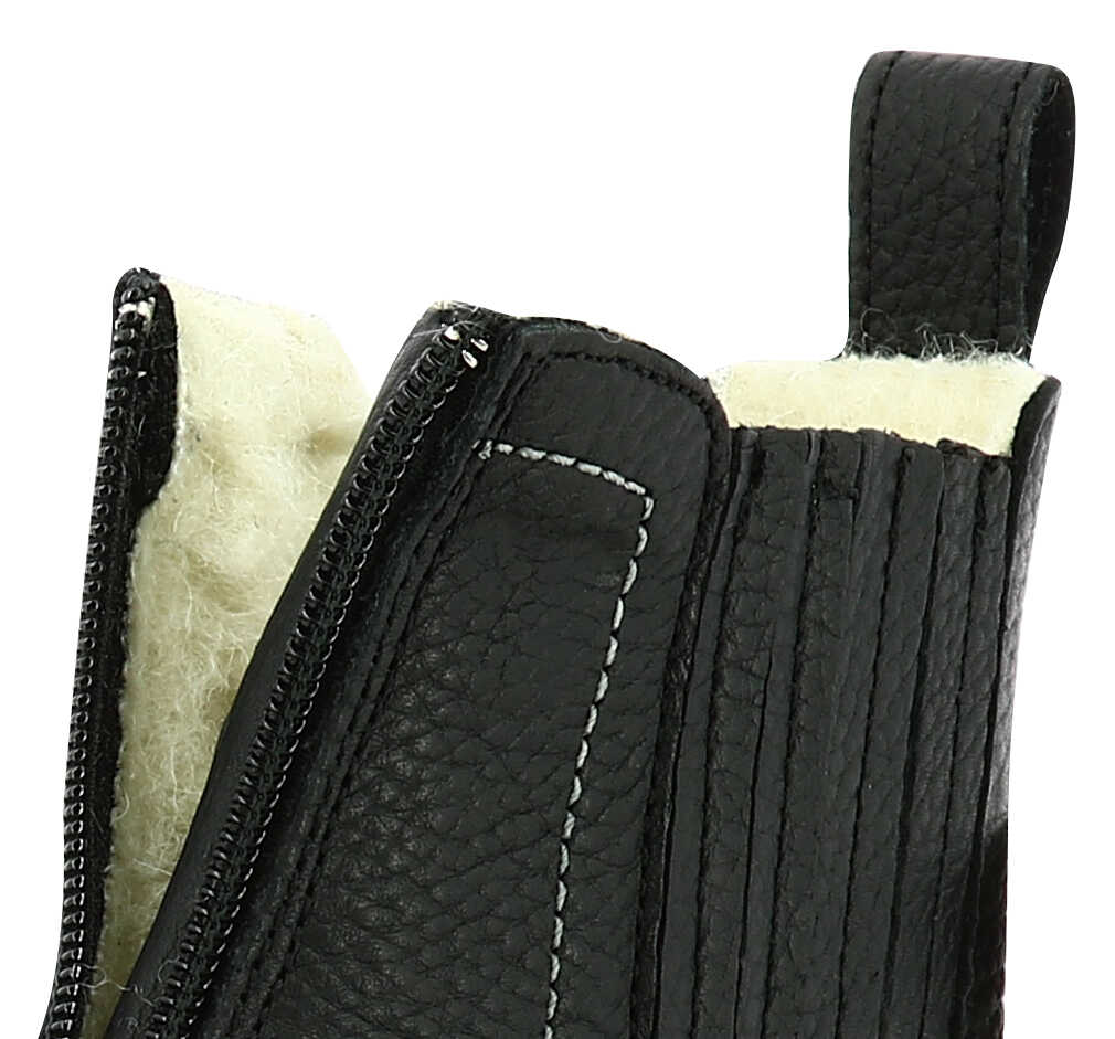 - Värme: Foder av äkta ull och innersula täckt med ren fårskinn.